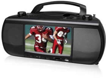 While you may look at the TFDVD777 7- inch Widescreen Portable Digital TV and DVD / CD Mini System from Coby and think novelty item, the TFDVD777 is a DVD microsystem that combines a wealth of entertainment options with great style and sound. The top-loading player is compatible with a wide variety of disc types and plays digital media files from USB flash drives and SD cards too. This 7 inch unit features an ATSC tuner, an integrated telescopic antenna for capturing the best possible reception, and high-output stereo speakers (4W). Additionally, a built-in headphone connection lets you watch